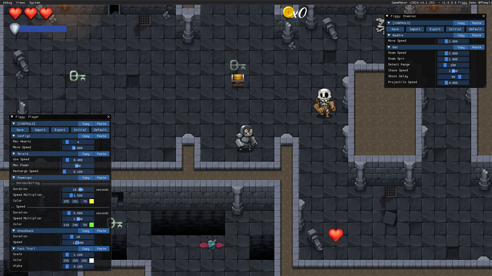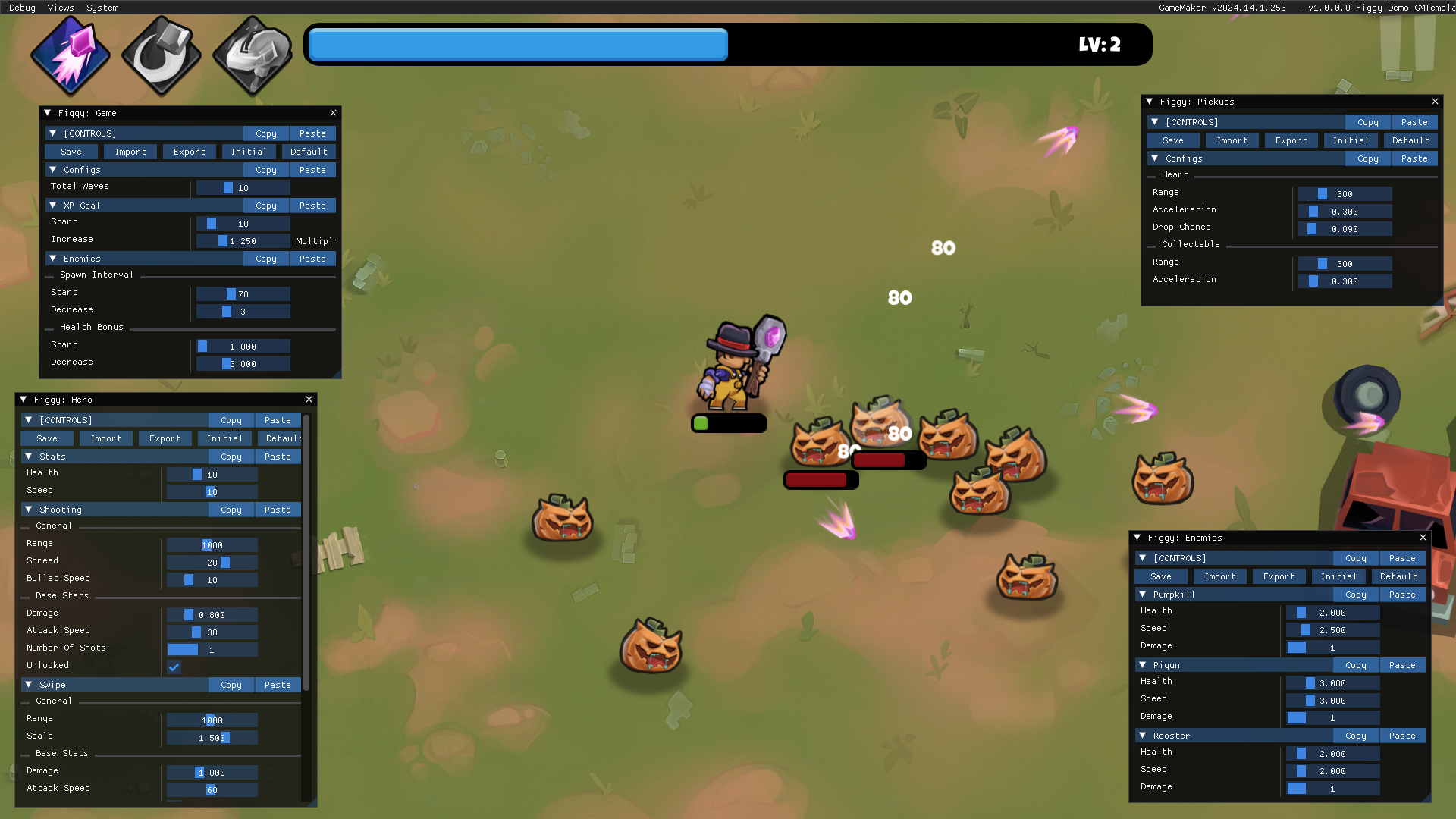 Figgy now comes with three demos, each based on a different official GameMaker template: Platformer, Survivor, and Hero’s Trail.